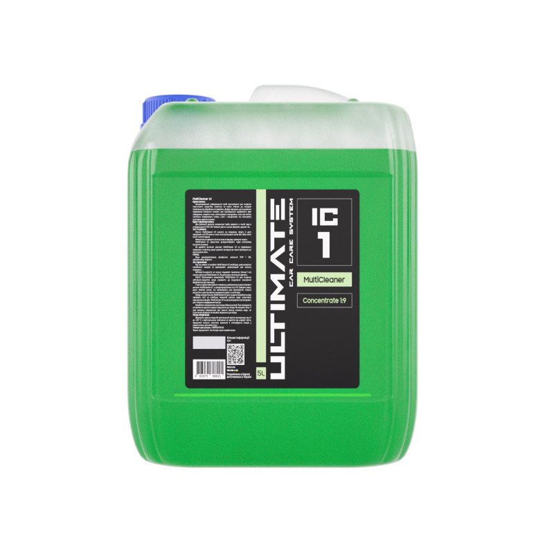 ULTIMATE MultiCleaner IC1 — професійний концентрований очищувач для інтер'єру авто. Потужно видаляє пил, жир, плями від напоїв, масляні плівки, сліди смол і наліт від куріння. Підходить для текстилю, велюру, шкіри, екошкіри, пластику, вінілу та скла. Безпечний для матеріалів, не залишає слідів чи розводів. Ефективний навіть проти складних і застарілих забруднень.